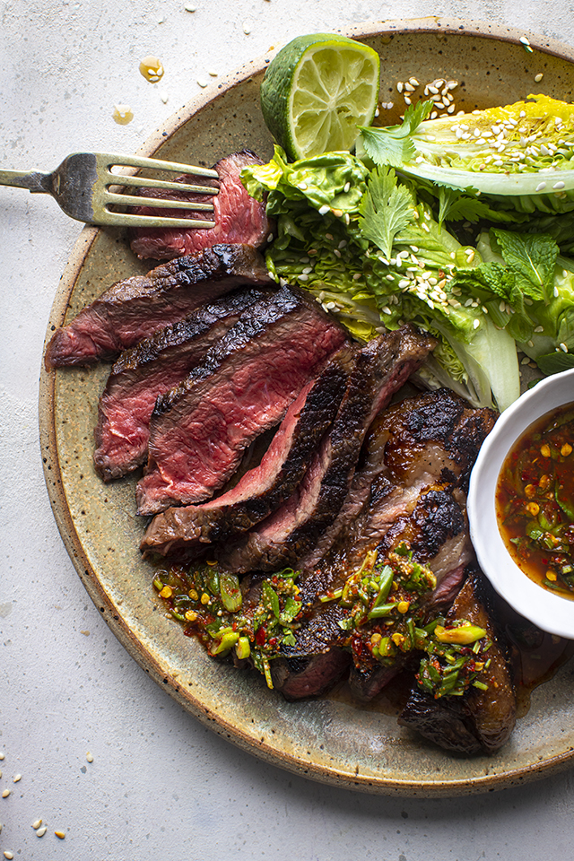Start strong with Steak with Crying Tiger Sauce and Sesame Baby Gem Salad- a Thai-inspired dish where the steak is great, but the dipping sauce is where it’s at. A vibrant mix of lime, fish sauce, sugar and chilli with that crucial toasty rice powder (the secret to its flavour and texture). The key here is a hard sear on the steak and get the best you can afford- Bavette is a treat. Let the steak rest before slicing thinly. As for the salad it’s a simple combo of crisp baby gem, dressed lightly with sesame oil, and rice vinegar. For true success, the steak is phenomenal cooked over blistering hot coals.