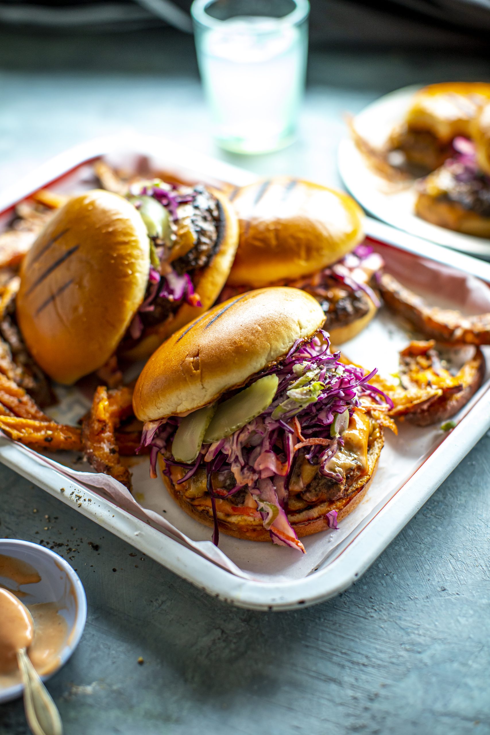 Next up, not technically BBQ friendly, but I make them with a flat grill plater to make a Smashburger Feast. The trick here is to use the best quality minced beef with a high fat content for the best flavour- don’t over mix and let the smashing take place over a high heat. Don’t mess with the cheese- Irish red cheddar works brilliantly here for real flavour, but feel free to swap in a nutty Comté if you’re feeling bougie. The sweet potato fries are a nice twist but only work if you follow the cornflour step- don’t skip it or you’ll get sad, soggy chips- ideal for your airfryer to take care of. Pickle brine in the dressing for the slaw is a smart move and helps cut through all the richness. Make extra sauce- you’ll want it on everything.